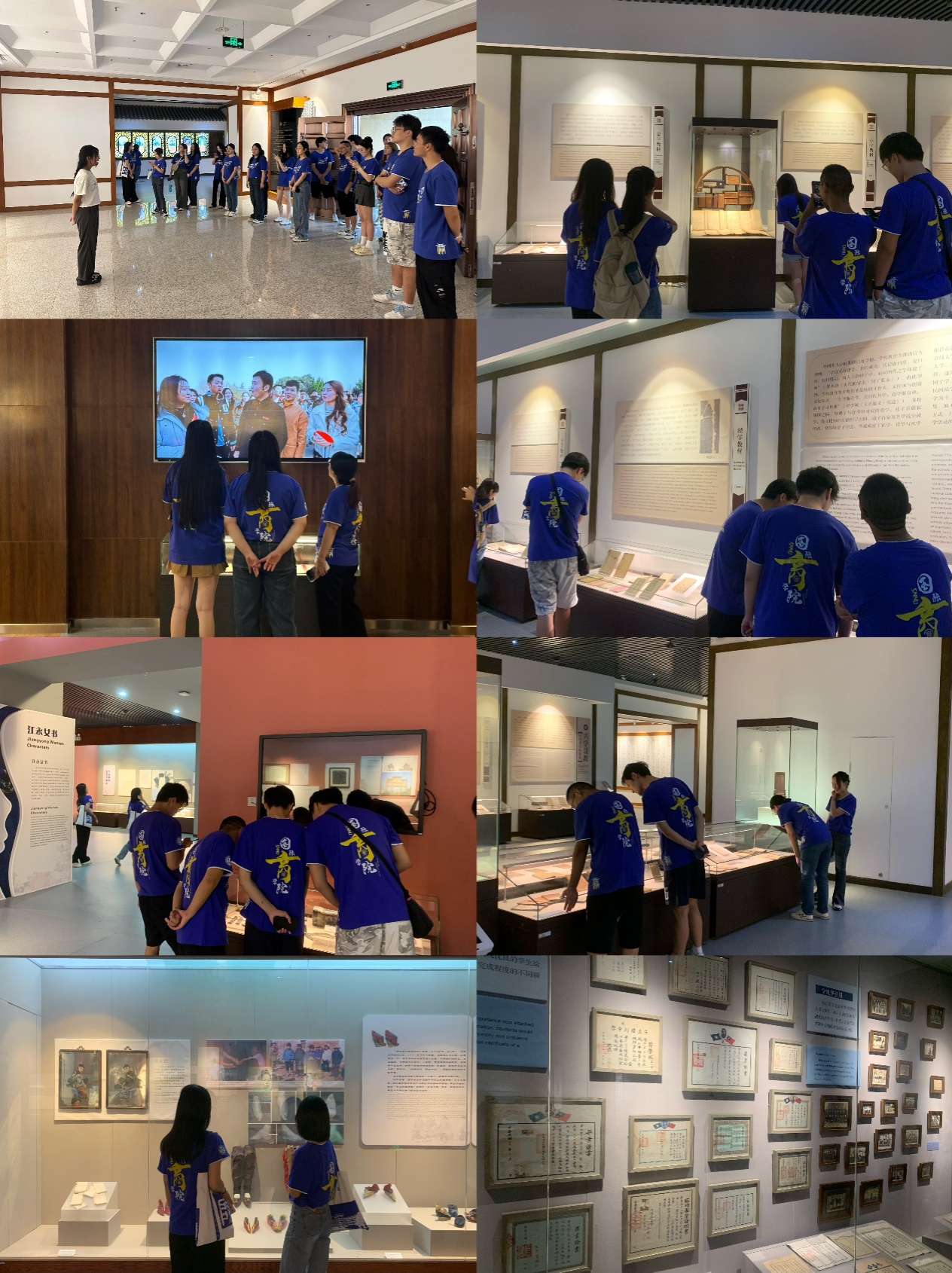 教育博物馆内,同学们先后参观了“中国教育馆” “历史文化馆”“妇女文化馆”等馆,中国教育馆陈列着从古至今多位优秀教育家、思想家和文化传承者的书籍贡献以及各个阶段的教学用具,每一样展品都向同学们诉说着我国教育发展的艰辛历程和现在的教育成果的来之不易。在这样浓厚的文化氛围中,每一位同学都对教育和文化饱含敬畏和尊重之情,同时也坚定了自己为建设文化强国贡献青春的决心。在讲解员的带领下,“古镜”“古钱币”“古兵器”等文物映入眼帘,大家从其中感受着历史的变迁,加深了对民族团结精神的认识。