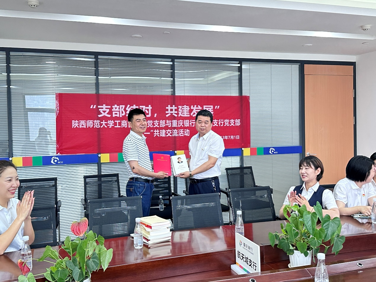 为充分发挥党建引领作用,形成业务融合的发展合力,我院工商管理系党支部于7月1日中国共产党建党102周年之际,与重庆银行航天城支行党支部联合开展了“支部结对、共建发展”主题党日活动。