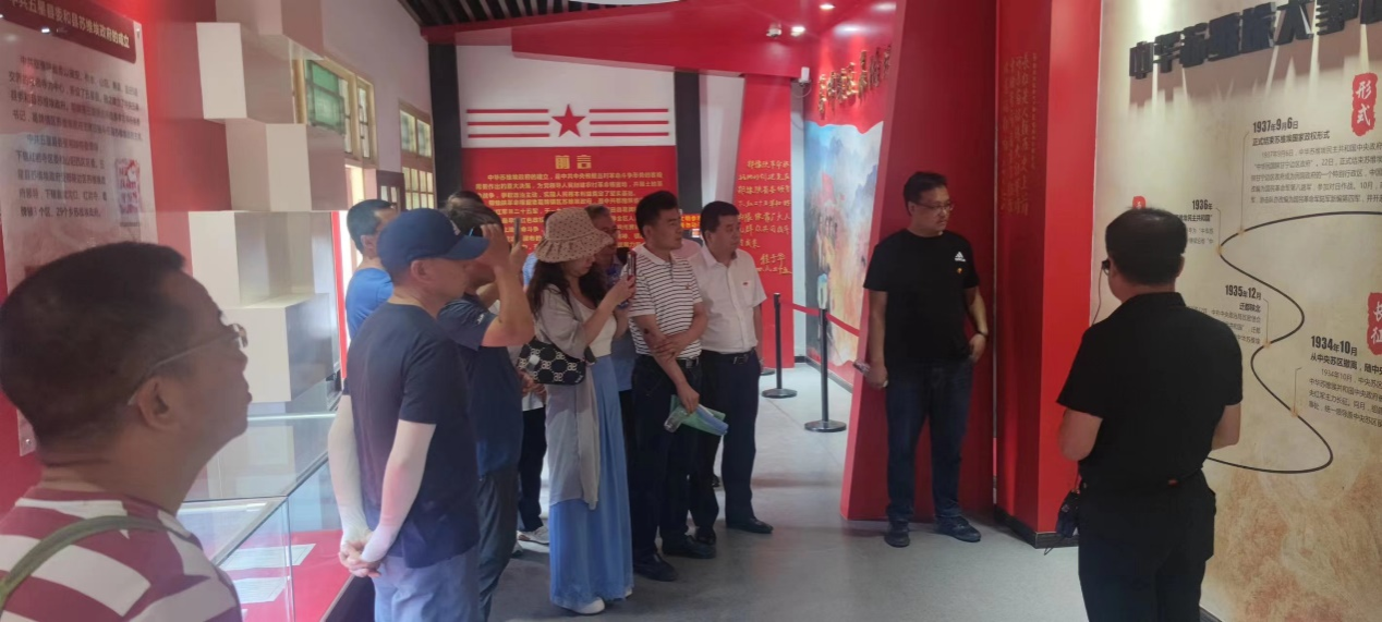最后,双方共同乘车前往蓝田县“鄂豫陕苏维埃政府葛牌镇区纪念馆”参观学习,瞻仰革命旧址,缅怀革命先烈,传承红色精神。在讲解员的带领下,双方支部党员参观了艰苦斗争岁月里的历史照片和实物,聆听了发生在这里的革命故事,了解了鄂豫陕葛牌镇区苏维埃政府的斗争历史和中国工农红军第25军在陕的战斗事迹,学习了先烈们英勇无畏、百折不挠的奋斗精神。