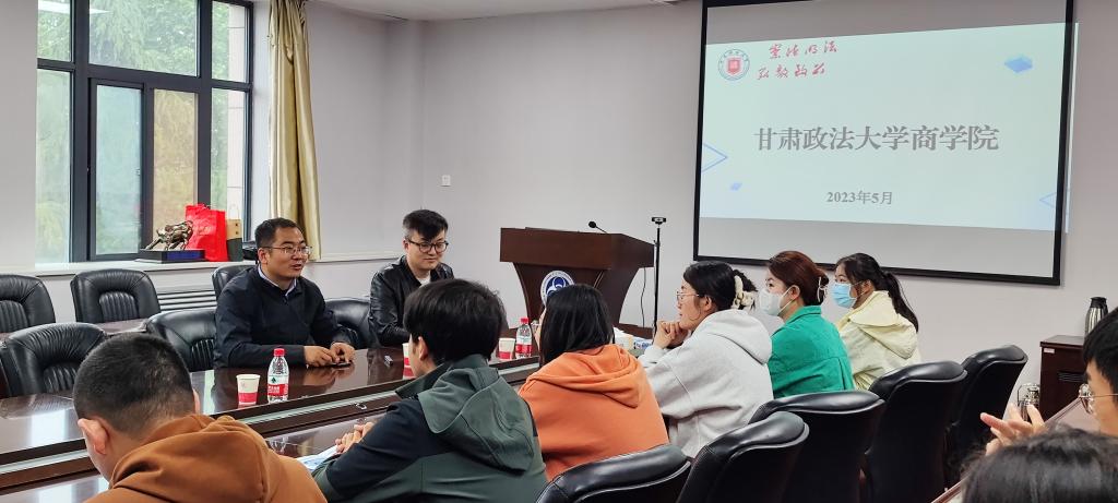 宣讲会上,孟望生向到场同学着重介绍了甘肃政法大学商学院的基本概况。甘肃政法大学是甘肃省省属的唯一一所政法类普通本科院校,其商学院于2020年在原经济管理学院基础上分设成立,学院如今在师资队伍、学科专业、科学研究、人才培养和社会服务等方面都取得了良好的发展。接着,他结合学院的主要教学研究方向以及甘肃区域的高质量发展需求,从招聘对象的基本条件、层次待遇等方面,就此次高层次人才引进计划作了详细讲解,为在场同学们提供了重要参考。最后,领导和老师们就同学们提出的问题进行了详细解答。