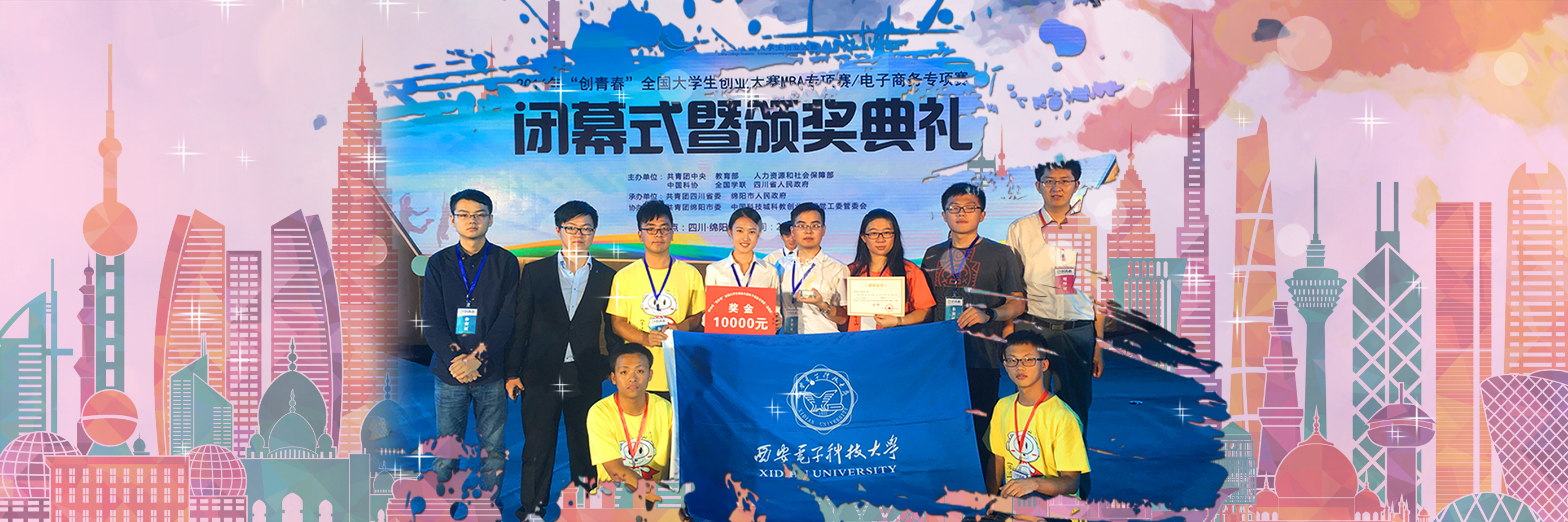 在2016年“创青春”全国大学生创业大赛MBA专项赛和电子商务专项赛终审决赛中,由微电子学院研究生孙景鑫、电子工程学院本科生胡潇菡、研究生吕鑫等同学组成的“易锁宝”团队获得电子商务专项赛实践类金奖;由经济与管理学院青年创业校友张旺、本科生李子晗、韩鹤林等同学组成的“小满良仓”团队,由通信工程学院本科生韩也威、林超等同学组成的“白鲸二手”团队获得电子商务专项赛实践类铜奖,获奖数量及等级位列全国高校第一。