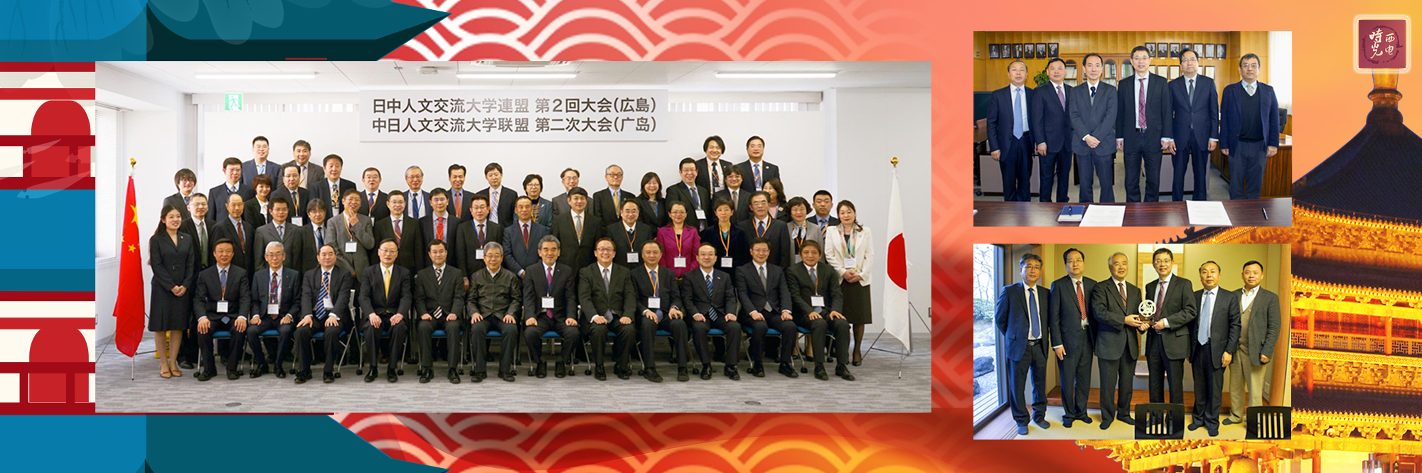 3月24日,来自中日30余所大学的100余名代表齐聚广岛大学,大家就“深化教育交流,促进相互理解”为主题,共同探讨了面向未来的中日大学合作模式及发展前景。教育部部长陈宝生出席论坛并做主题演讲。论坛发表了“共同声明”,进一步强化学生相互交流与活动创新,引领年轻人成为两国沟通交流的下一代桥梁。论坛也明确了下一届的研讨主题:科技发展与人文素养。论坛期间,杨宗凯先后与日本广岛大学、武藏野大学、长崎大学、上智大学、樱美林大学等高校的校长进行了广泛的会谈和交流,为学校今后的对日的合作奠定了基础。