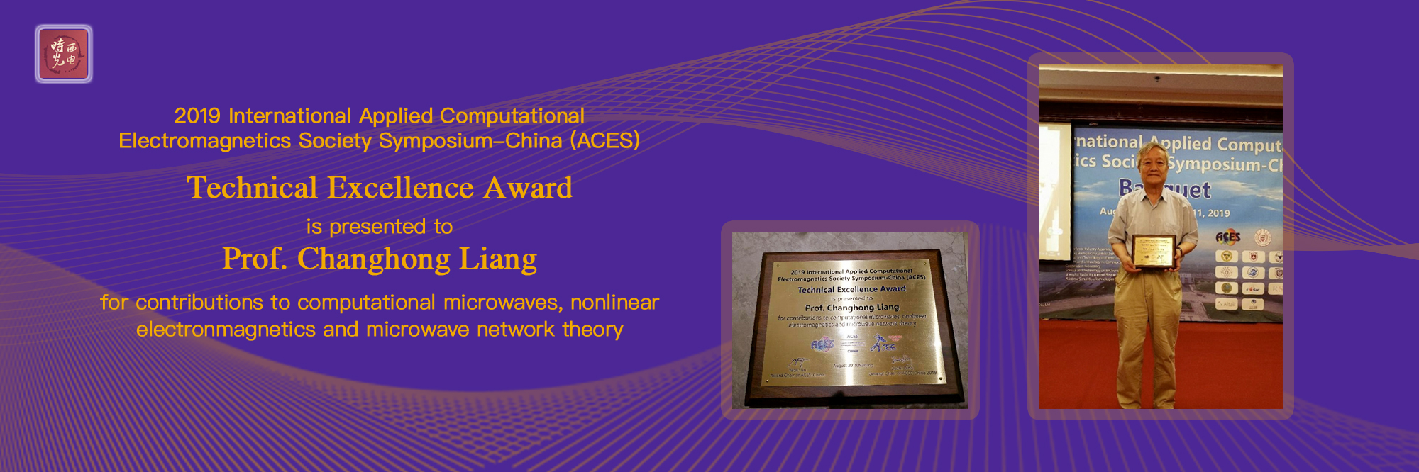 2019国际应用计算电磁学会(International Applied Computational Electromagnetics Society, ACES)国际会议于8月8日~11日在南京召开。这次大会是由ACES学会和南京理工大学主办,并联合了十多家大学、研究所和企业联合承办,会议规模盛大。在此次会议上,经大会评奖委员会的推举和评选,梁昌洪教授因其在计算微波、非线性电磁学和微波网络理论方面的卓越贡献,荣获“杰出成就奖”。梁教授在8月10日晚上的颁奖晚宴上领取了这一殊荣。