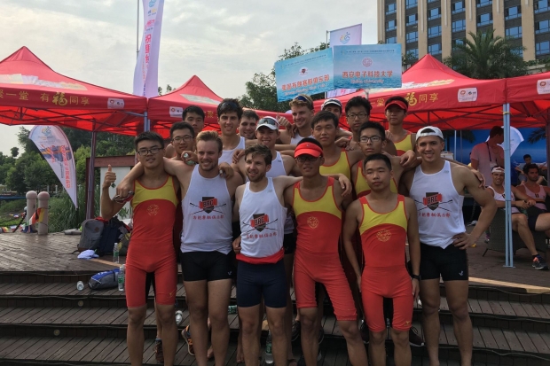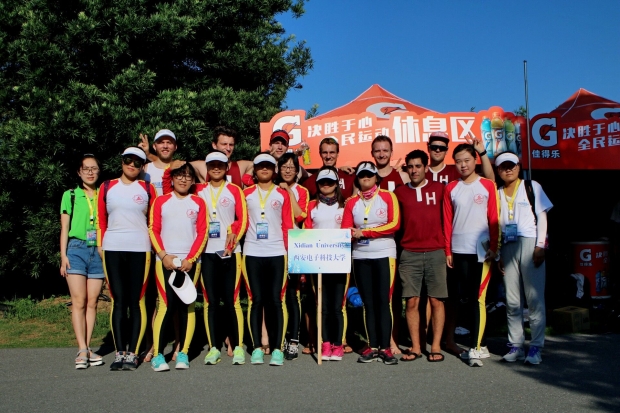 西电赛艇队与华威大学赛艇队合影
