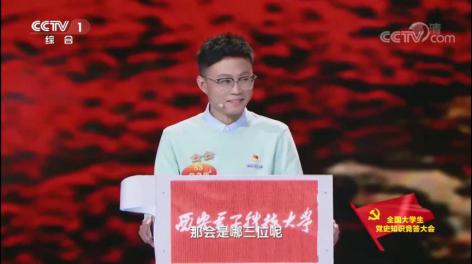《全国大学生党史知识竞答大会》聚焦庆祝建党百年,以习近平新时代中国特色社会主义思想为统领,以“点亮红色地标”为创意线索,通过年轻化的方式,创新五星挑战赛赛制模式,由演播室100所高校的100位大学生现场答题,集结“云上”2800多所高校、共1000多万大学生及校友同步答题。2021年,学校突出红色校史特色,坚持线上线下联动,引导广大师生在党史学习教育中传承红色基因,汲取奋进力量,厚植爱党爱国情怀。自大会筹备以来,党委组织部、宣传部、教师工作部、学生工作部、研究生工作部、团委与各学(书)院依托新媒体矩阵搭建党史学习教育线上平台,以“青春向党歌曲接力” “百日述百年”等特色专栏引导师生重温中国共产党百年奋斗的光辉历程,并广泛组织动员参与线上答题。经选拔推荐,党奇伟同学代表学校受邀参与节目现场录制。备赛期间,参与《百年红魂》项目党史知识图谱项目开发,成功入围全国大学生互联网+创新创业大赛青年红色筑梦之旅赛道陕西省赛并斩获金奖。在录制过程中,先后在第一期、第六期节目中冲出百人团,也是西北地区高校中唯一一位登上主舞台的选手。累计获得三颗星,总成绩(积星数量)为西部十省高校选手第一名。