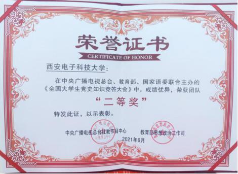 西电获《全国大学生党史知识竞答大会》团体“二等奖”