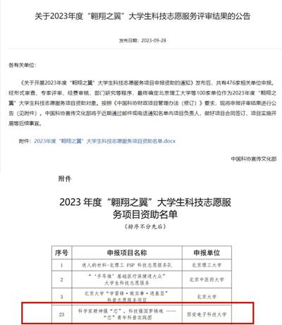 【学在西电】西电“芯”青年科普实践团入选2023年中国科协大学生科技志愿服务项目
