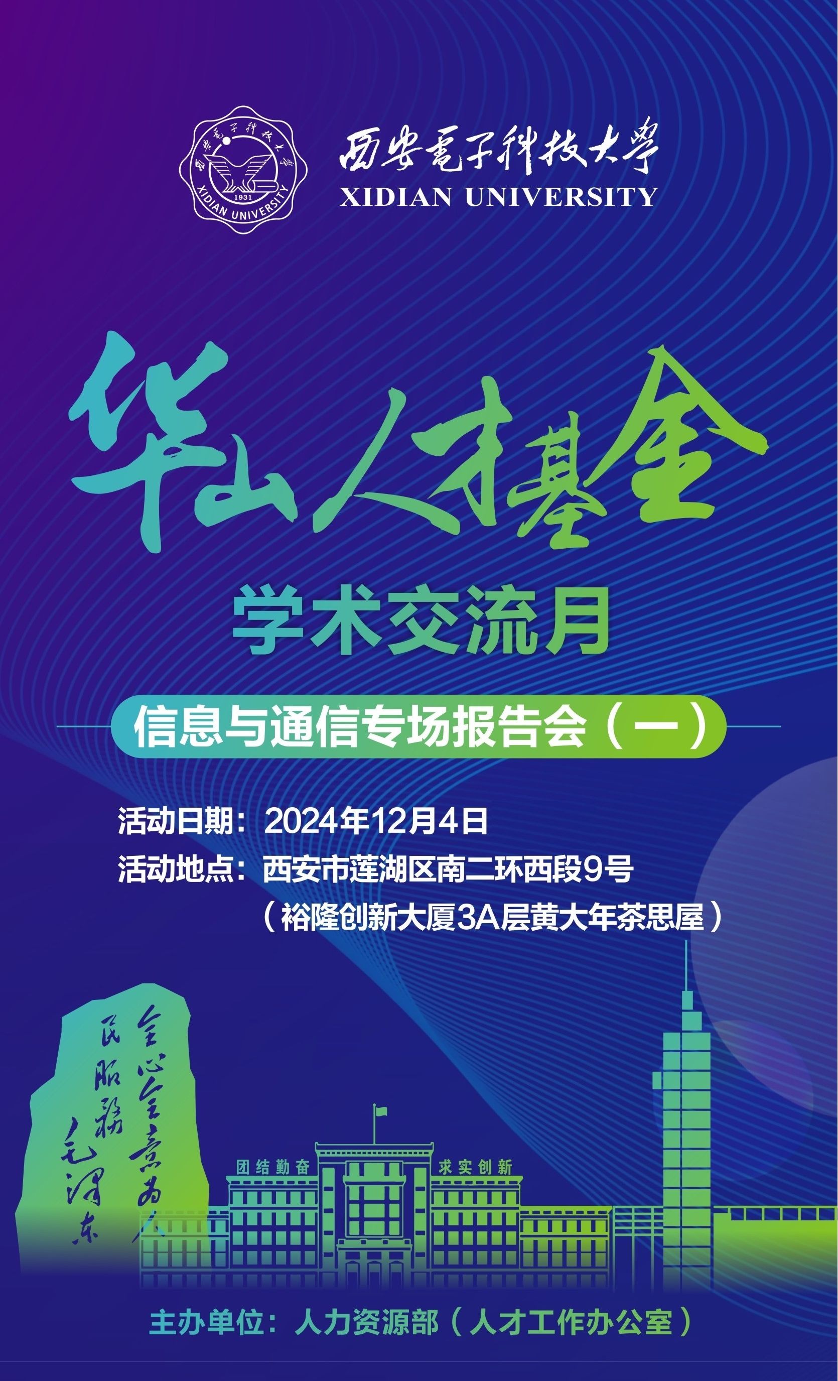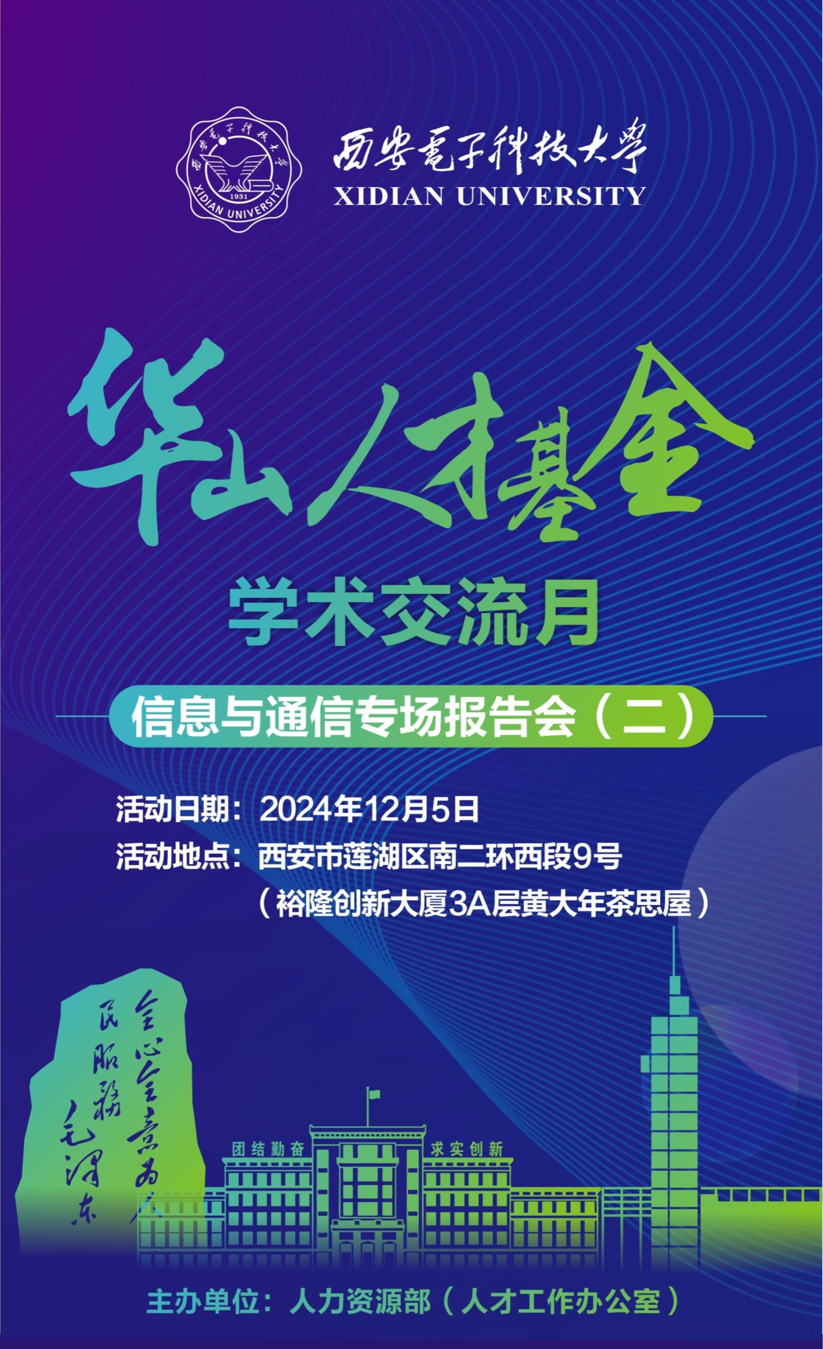 地 点:西安市莲湖区南二环西段9号(裕隆创新大厦3A层黄大年茶思屋)